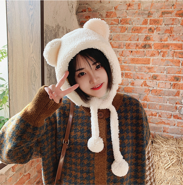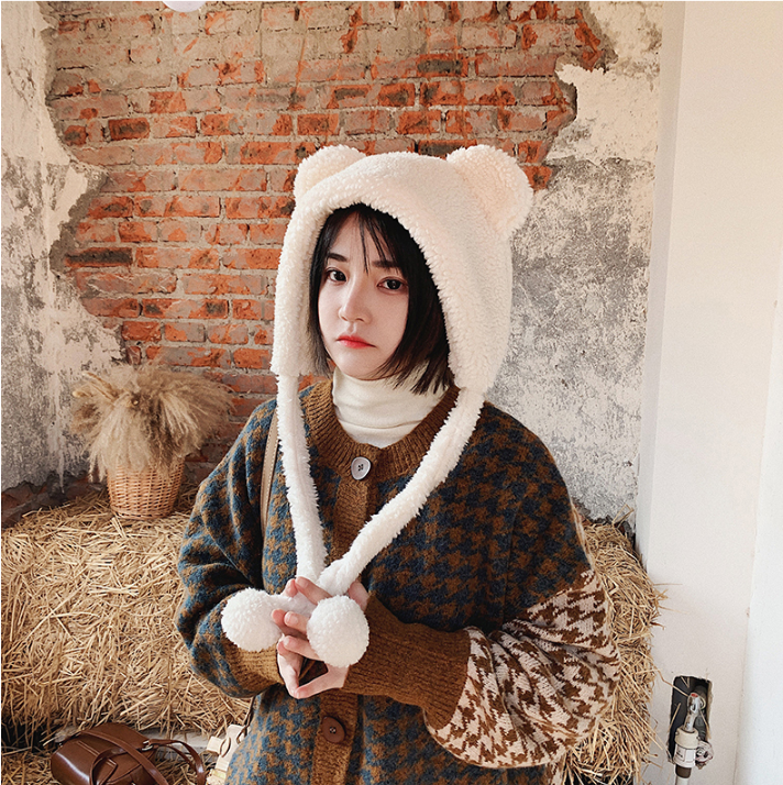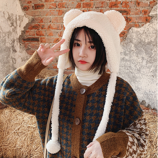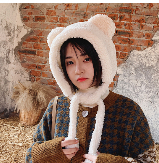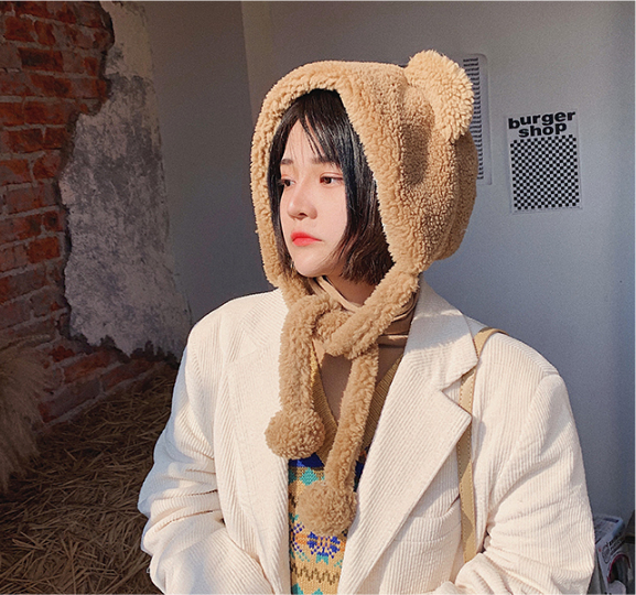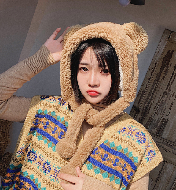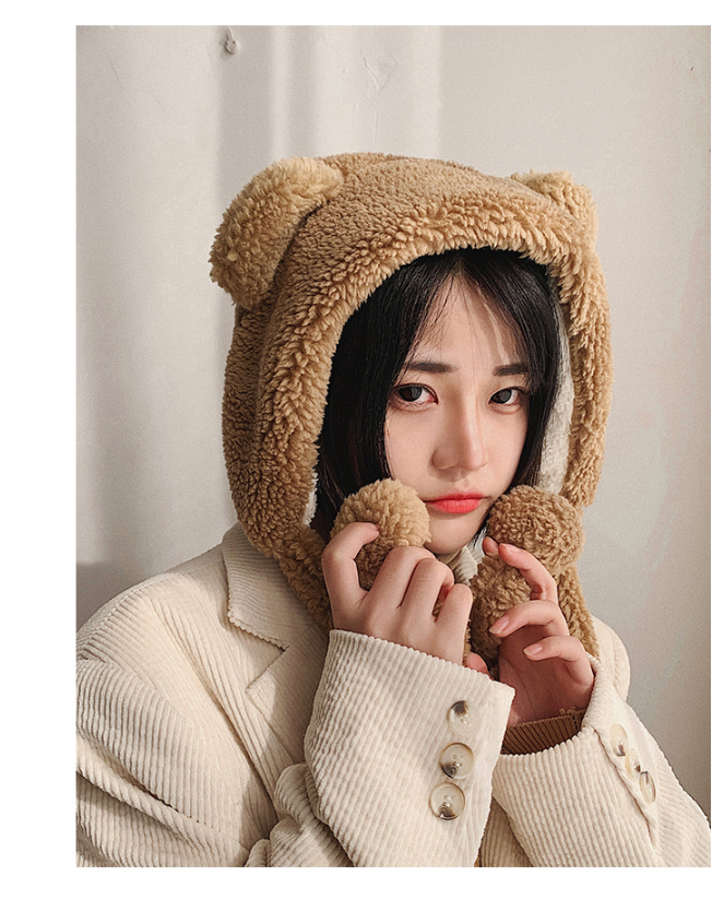 甜美小熊毛绒帽