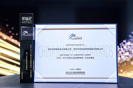 11月2日,由《经济观察报》主办,中国广告协会指导的“品牌向上——2021年度营响大会”,暨第十九届杰出品牌营销年会的获奖名单正式发布。深圳市茶仙记爱的茉莉香(茶仙记品牌公司)在第十九届杰出品牌营销奖年度单项奖中荣获杰出品牌营销奖-杰出传播奖。 茶仙记品牌 “好一朵美丽的茉莉花”项目获奖奖杯 经观传媒主办的杰出品牌营销年会截止目前已成功举办至第十九...