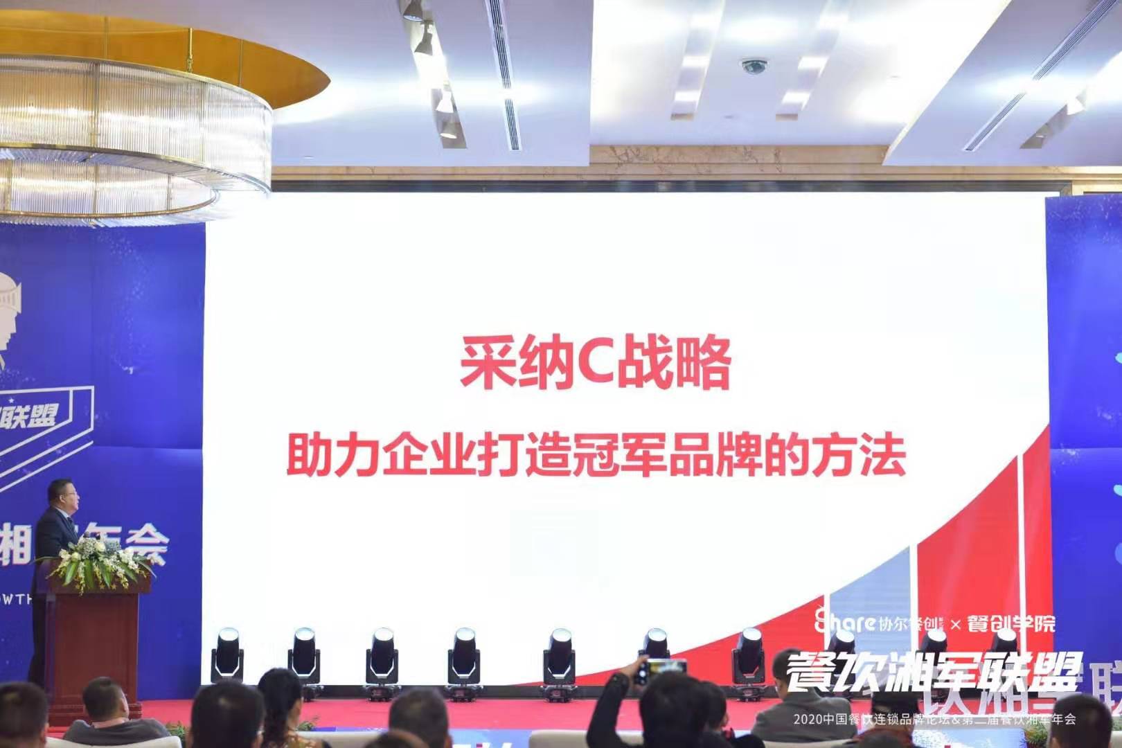 2019年12月29日,2020中国餐饮连锁品牌论坛暨第二届餐饮湘军年会“共生主义·连锁增长”在湖南长沙华天大酒店隆重举行,由采纳品牌顾问(湖南)、协尔餐创孵化器发起,省工商联、湖南职业经理人协会、湖南食品流通协会、长沙市饮食安全协会等官方机构指导,汇湘轩、汇美空间、绝味·绝配供应链、厚谷餐饮商学院、哗啦啦、中南营销群、才猫咨询、混沌大学等联合举办,并得到湘窖酒业、国草酒、中茶·黑茶、盛和、优名堂、交通银行、国草酒、九阳豆浆、卡普包装的大力支持。