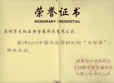 刚刚结束的2019年第十七届中国营销盛典,深圳采纳公司荣获双项大奖:深圳市采纳品牌营销顾问有限公司《获得2019中国杰出营销机构“金智奖”》、采纳创始人朱玉童先生获得《中国原创营销理论探索奖》