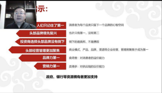 朱玉童老师以“生物进化论”作为切入点,朱老师说;品牌是特殊的生命体,具备生命的要素和特征,品牌像人一样,具备符号、消耗资源、对外界刺激作出反应、有新城代谢、会法语、成长和死亡、依照指令进行活动、品牌不能脱离生态环境单独存在,正如生物不断进化,品牌也是在不断的进化发展,需要进化升级。而在当下的后疫情时代,企业为什么更要成为冠军品牌或者叫做头部品牌?在如此艰难的特殊时期,企业又如何成为冠军品牌?