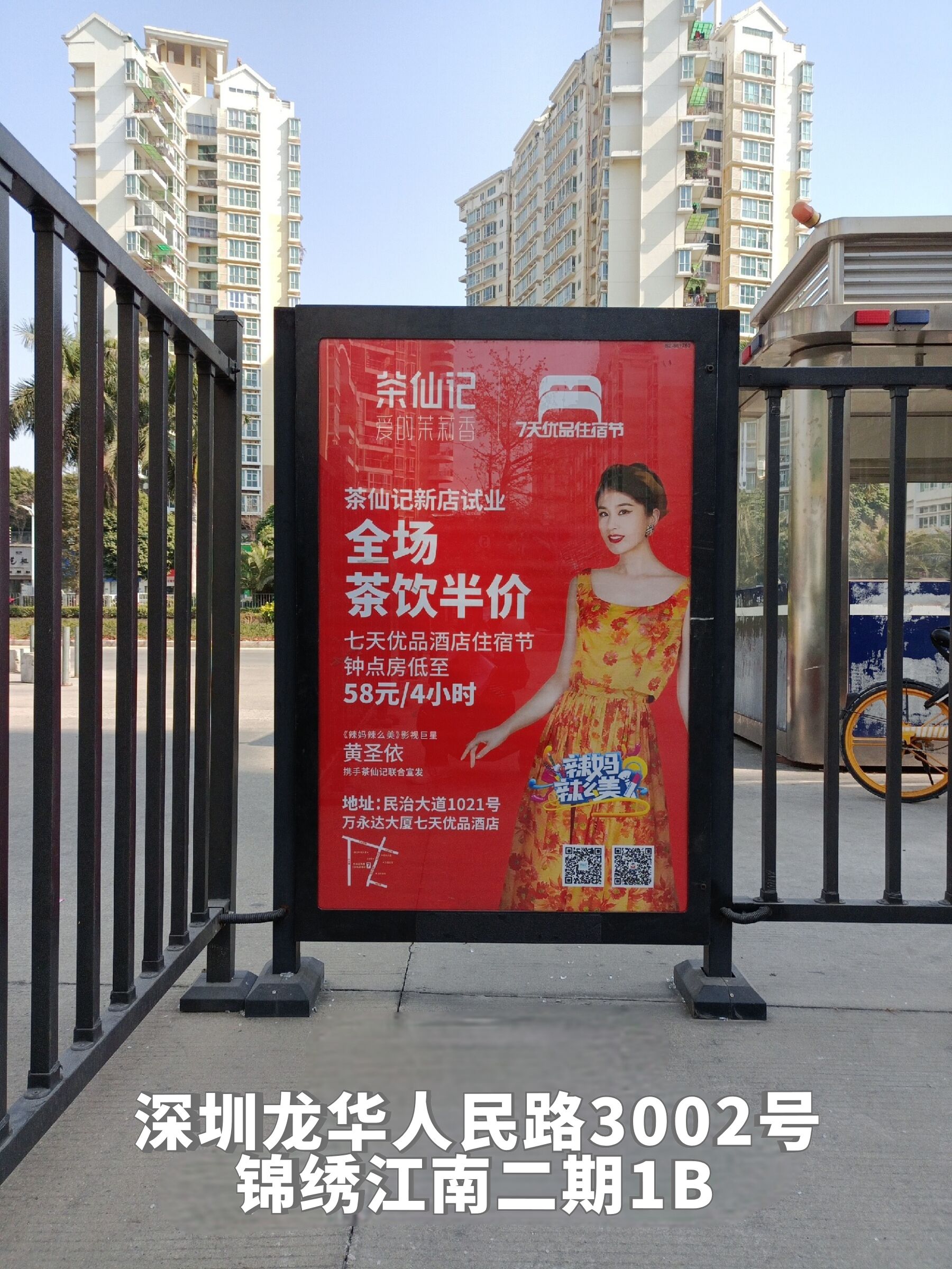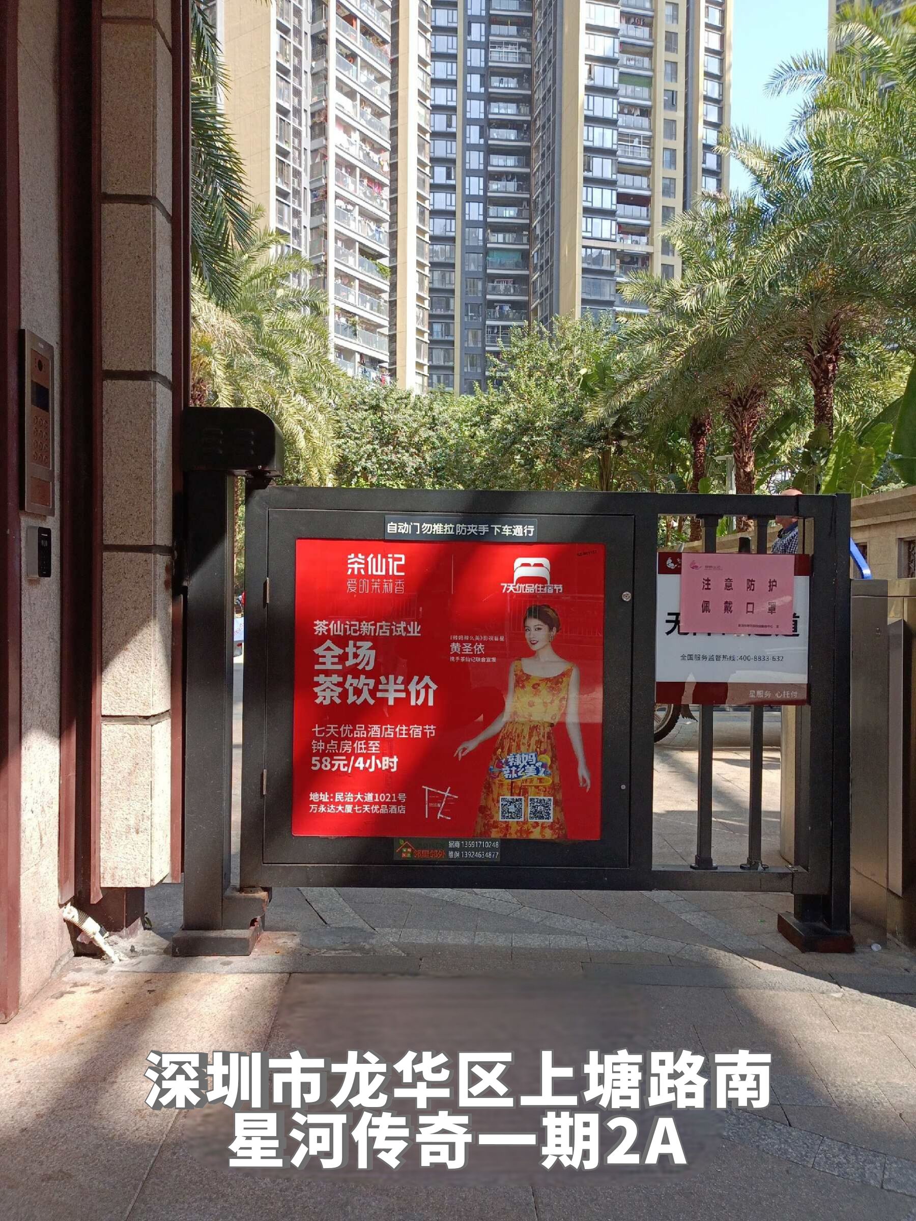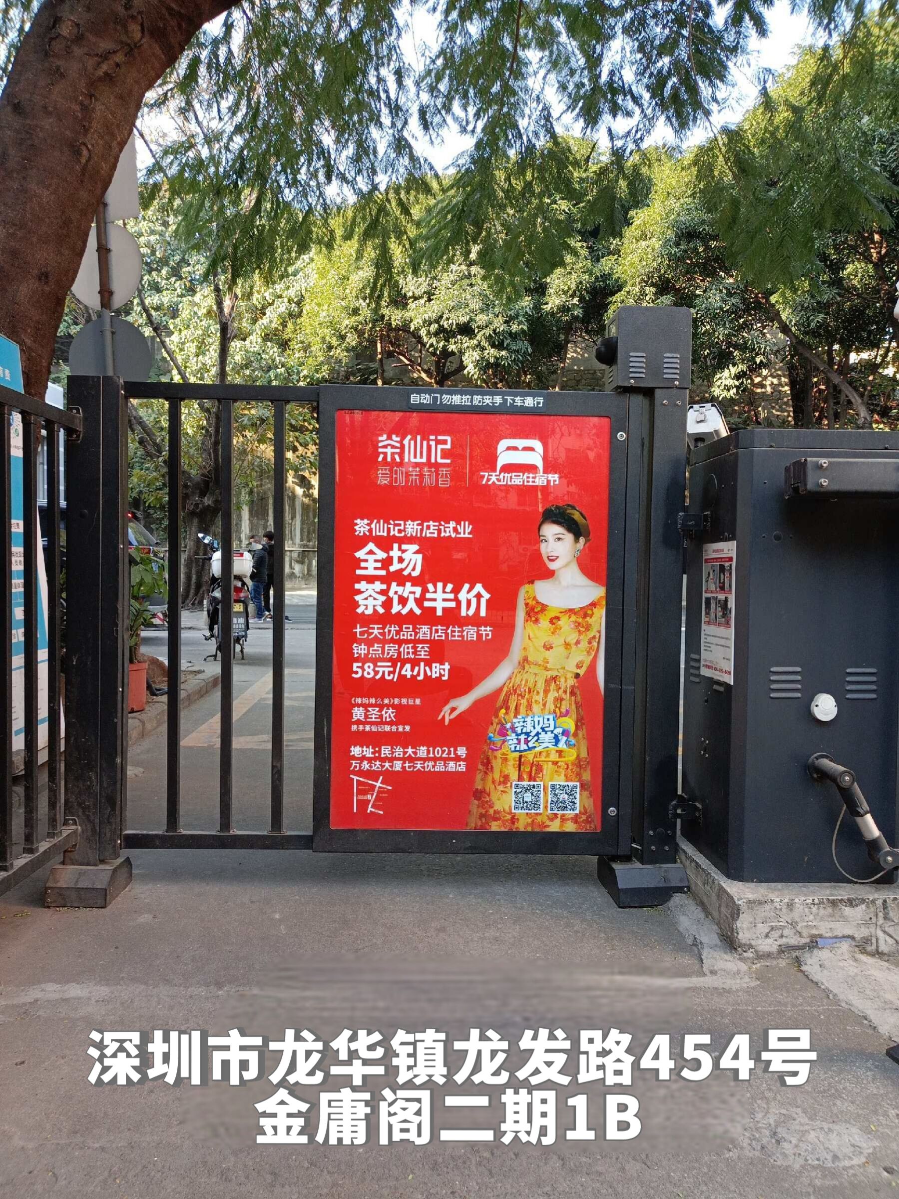 2021年1月16日,深圳龙华区创兴时代、合正中央原著、鸿荣源·尚峻、金地上塘道花园、锦绣江南二期、星河传奇一期、星河传奇二期、星河传奇三期、银泉花园、中海锦城、幸福城二期、东华明珠园、福景花园、弘诚阁小区、金庸阁二期、康华苑、优品建筑、龙岸花园、春华四季园各大小区门禁与地下停车场都能看到茶仙记的身影。茶仙记试业优惠广告27个站点齐发,红遍龙华!