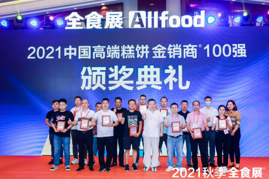 2021年秋季全食展金销商大奖颁奖典礼上,2021年中国糖果零食金销商100强、2021中国高端糕饼金销商100强、2021中国卡通玩具视频金销商50强、2021中国糖果喜铺金销商25强等多个行业榜单正式发布,300家来自全国各地不同渠道领域的金销商同台获得表彰,朱玉童先生为获奖的金销商颁发荣誉奖章。
