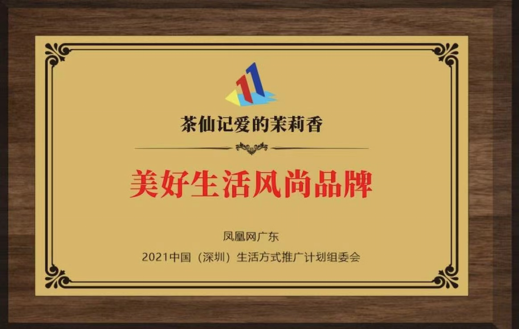 2021中国(深圳)美好生活品牌暨新消费场景发展高峰论坛在昨日盛大召开,茶仙记爱的茉莉香荣获凤凰网广东、2021中国(深圳)生活方式推广计划组委会共同评选出的美好生活风尚品牌大奖。