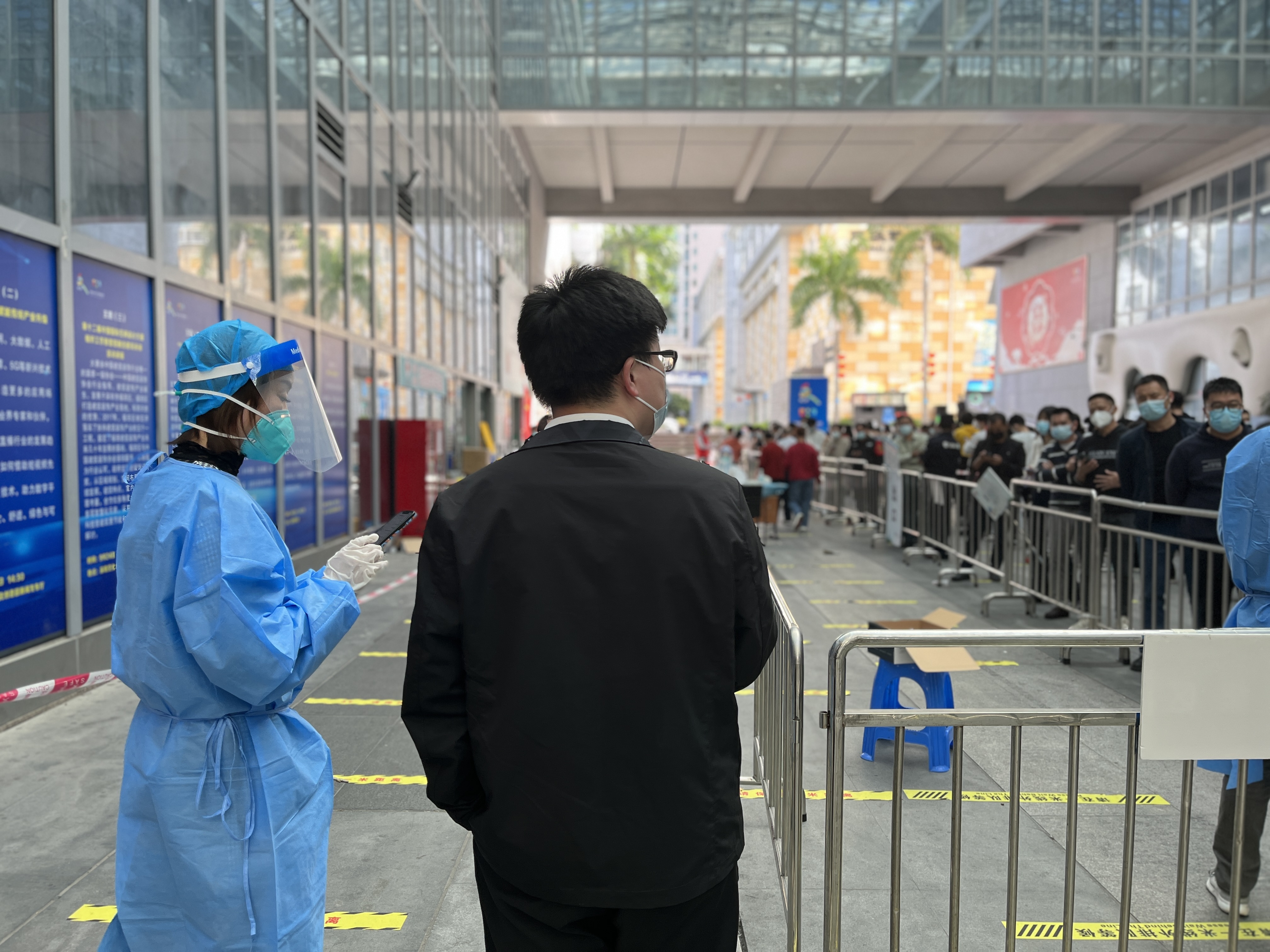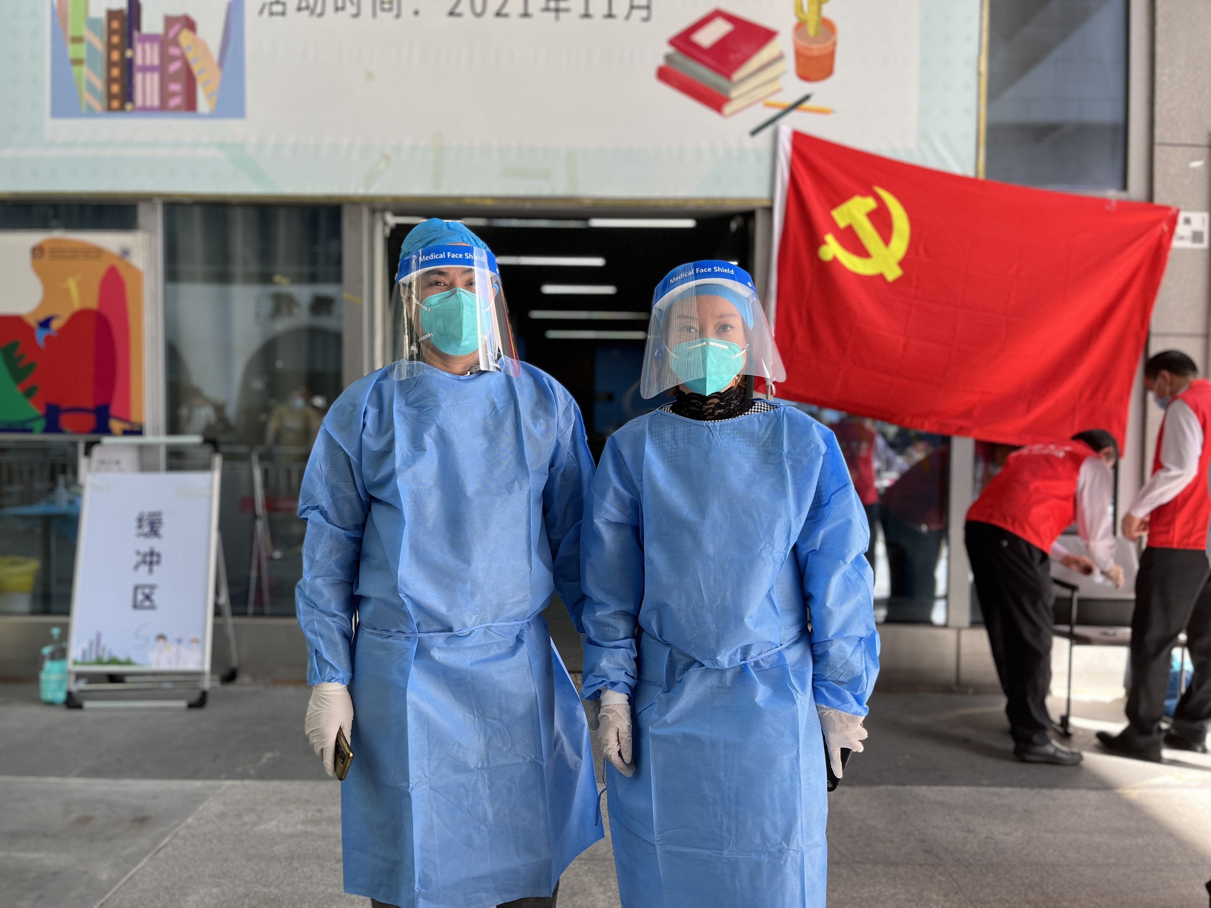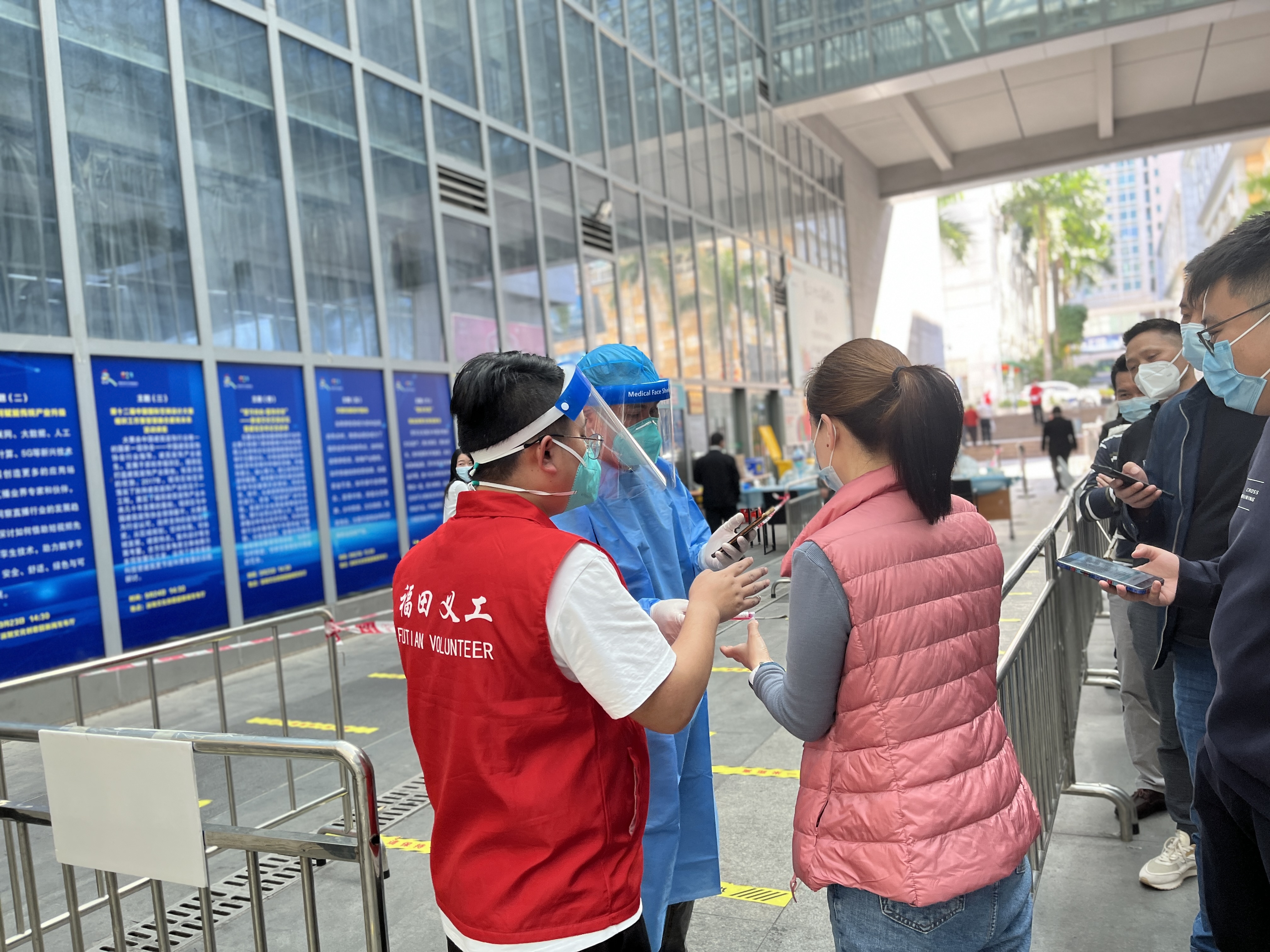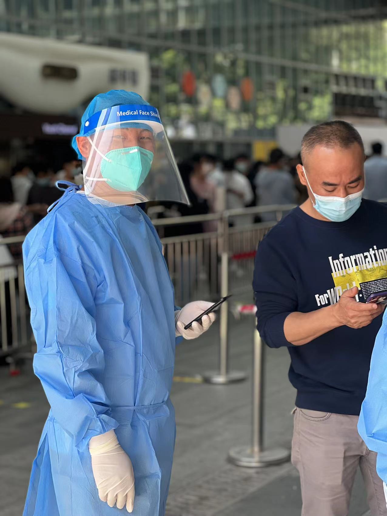 公司员工在社区的统一安排下,前往核酸检测一线,协助开展核酸检测、排查登记、秩序维护等疫情防控志愿服务,在?;ず米陨戆踩那榭鱿?,全力投入到防疫工作中。变身暖心“志愿者”为园区的健康和安全保驾护航。