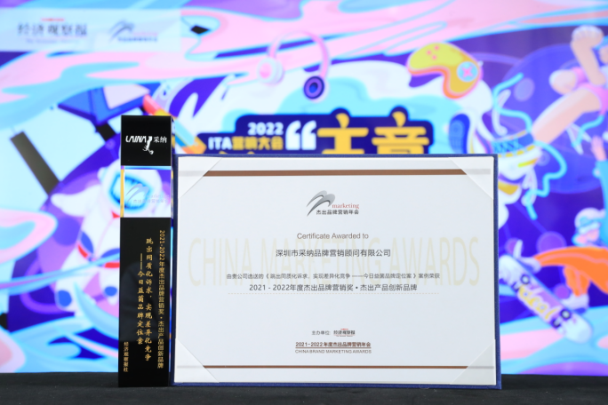 扎根深圳,服务全国;引进国际先进营销理念,践行中国本土实战的采纳品牌营销策划有限公司,在2022年众多的营销奖申报案例中,以大胆的创意,深刻的洞察,系统的营销落地,斩获2021-2022年度杰出品牌营销奖——杰出产品创新品牌奖。