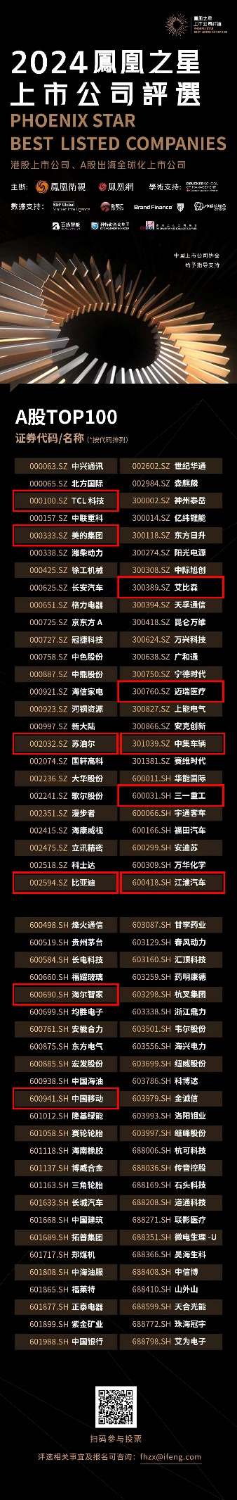 近日、由凤凰卫视、凤凰网推出的“2024凤凰之星上市公司评选”活动。该活动已分别评选公布了A股和港股100家候选企业名单。令人惊喜的是——深圳市采纳品牌营销顾问公司提供咨询服务及采纳金老虎游学的企业共计11家入选,彰显了采纳公司在中国上市公司核心竞争力和影响力。
