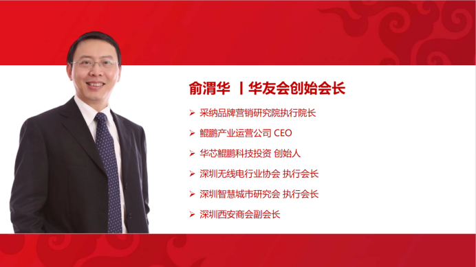 华友会创始人俞渭华毕业于西安电子科技大学,93年加入华为。01年离开华为后创过业、投过资、又去企业里工作过。目前是深圳湾华晟文化创始人、西电深圳校友会副会长、西电ICT行业校友会副理事长、深圳智慧城市研究会执行副会长、深圳培训师联合会长。在华为工作期间历任华为局机市场部商业网技术总工、华北片区技术部经理、太原办副主任、光网络重大项目部副总经理、营销干部培训中心主任等职。作为华为工号680老员工,10多年前创立了前华为人友谊联合会(华友会),推动联合出品了首部致敬科学的纪录片《洪荒之力》及策划出版《华为管理之道》《华为离职江湖》等多本畅销书,发起了多家知名企业离职社群群英荟-荔枝荟。