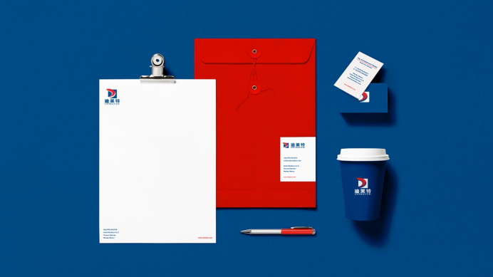 如何从视觉上让迪美特与防爆专家的定位形成深度绑定?我们首先对迪美特的品牌LOGO进行了升级,因为原LOGO的采用了大面积的红色,容易让客户产生与火、爆炸的联想,且无法与竞品形成区隔,因此我们决定,在适当保留原型的基础上,对品牌主色、LOGO形体进行重新优化,塑造出一个立体、有质感、代表防爆安全的品牌识别符号。