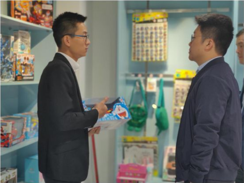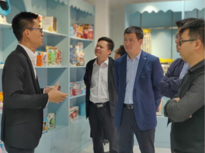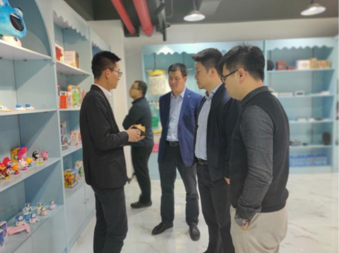 在哎趴屋模式介绍上,汪帆与安科长详细的介绍哎趴屋集合的IP品牌势能,在授权和周边产品打造上面,同时就逐一IP产品做出详细的介绍,安科长赞赏哎趴屋现在的业务模式,在品牌提升上面对东莞的企业的转型升级上面起到重要作用。