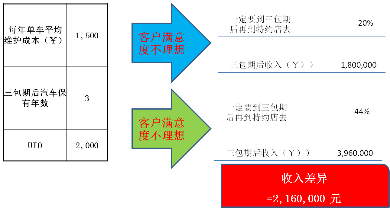 例:以一个保有量为2000台的汽车售后特约店为例(仅计算车辆维修成本)