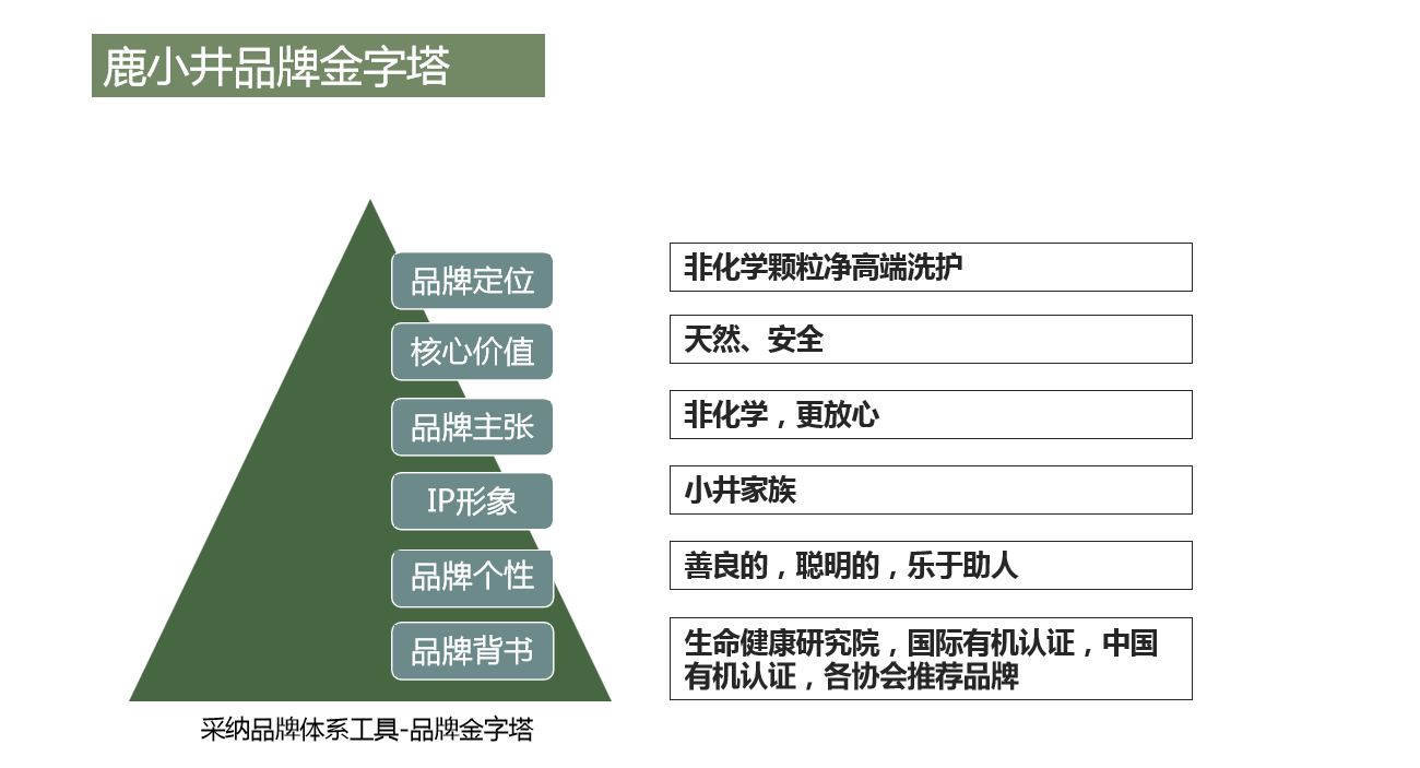 首先,采纳展开细致的市场调研发现,母婴洗护行业大牌云集,但市场缺乏专业细分化品牌,并且在洗护领域多以液体形式呈现,宣传的卖点也多为植物配方,概念同质化严重。重盐集团想要在市场一举成名,势必要塑造一个高端高价值母婴洗护品牌,立足母婴洗护市场,进而渗透更为庞大的家庭洗护市场。但要打造高价值品牌,首先要塑造一套完整的品牌价值体系。