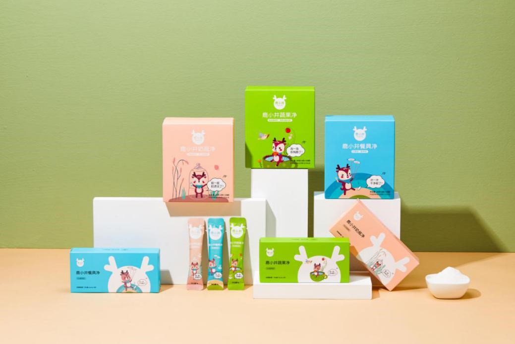 有餐具净、蔬果净、奶瓶净,盒装、试用装、瓶装各三款,画面以IP形象设计与产品功能元素结合,呈现出鹿小井品牌专属画面,将更健康的清洗生活方式带给万千消费者!