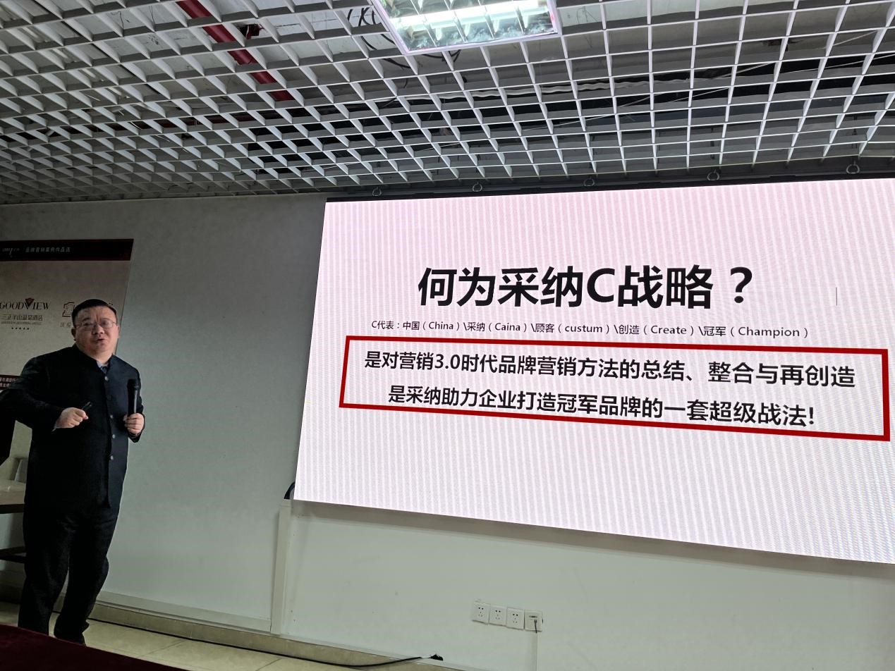 “采纳C战略”。C代表——china(中国)caina (采纳)create(创造)champion(冠军),连在一起的意思这套战略系统就是中国采纳创造冠军品牌!